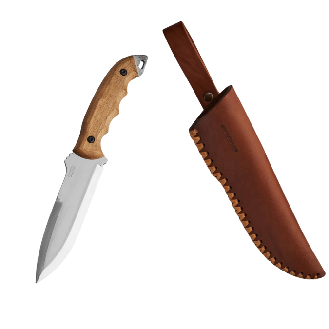 Each HK2 includes a premium genuine leather sheath with a belt loop for vertical carry. The snug fit protects the blade while keeping it accessible. As a high-carbon steel knife, it’s essential to clean and dry the blade after use to prevent corrosion and extend its lifespan.