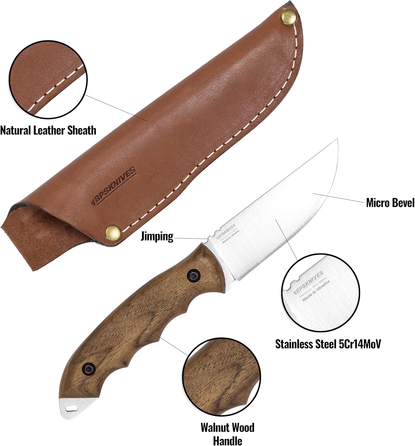 A full-tang stainless steel bushcraft knife with a sharp 5Cr14MoV blade and ergonomic walnut handle. Built for everyday outdoor utility and reliable field performance.