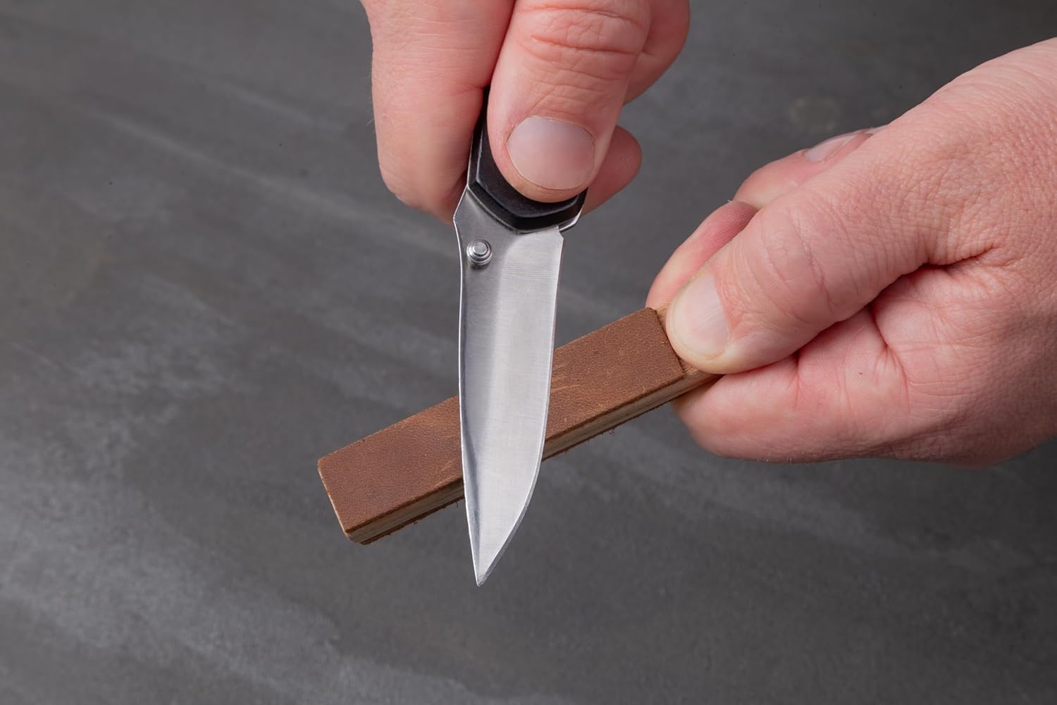 This leather strop is suitable for both carbon steel knives and stainless steel knives, and it performs especially well on fine cutting edges that require careful handling rather than force.